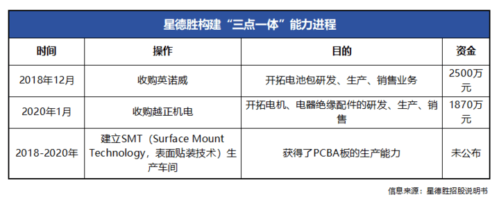 自 2018 年开始,星德胜通过对外收购项目和对内能力建设的方式,逐步实现产品能力进化。原本只能推出电机产品,目前具备在整合电机、驱动板、电池包三个板块推出自动化解决方案的能力。「这种捆绑销售模式,我们内部称为 『三电一体』。」 工作人员表示。