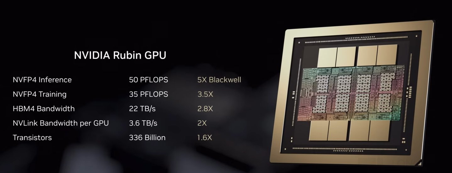 老黄在 CES2026 上披露,公司 Rubin GPU 的算力将达到 Blackwell 系列的 5 倍 (在 NVFP4 推理模式下),将继续在 AI 芯片赛道领跑。