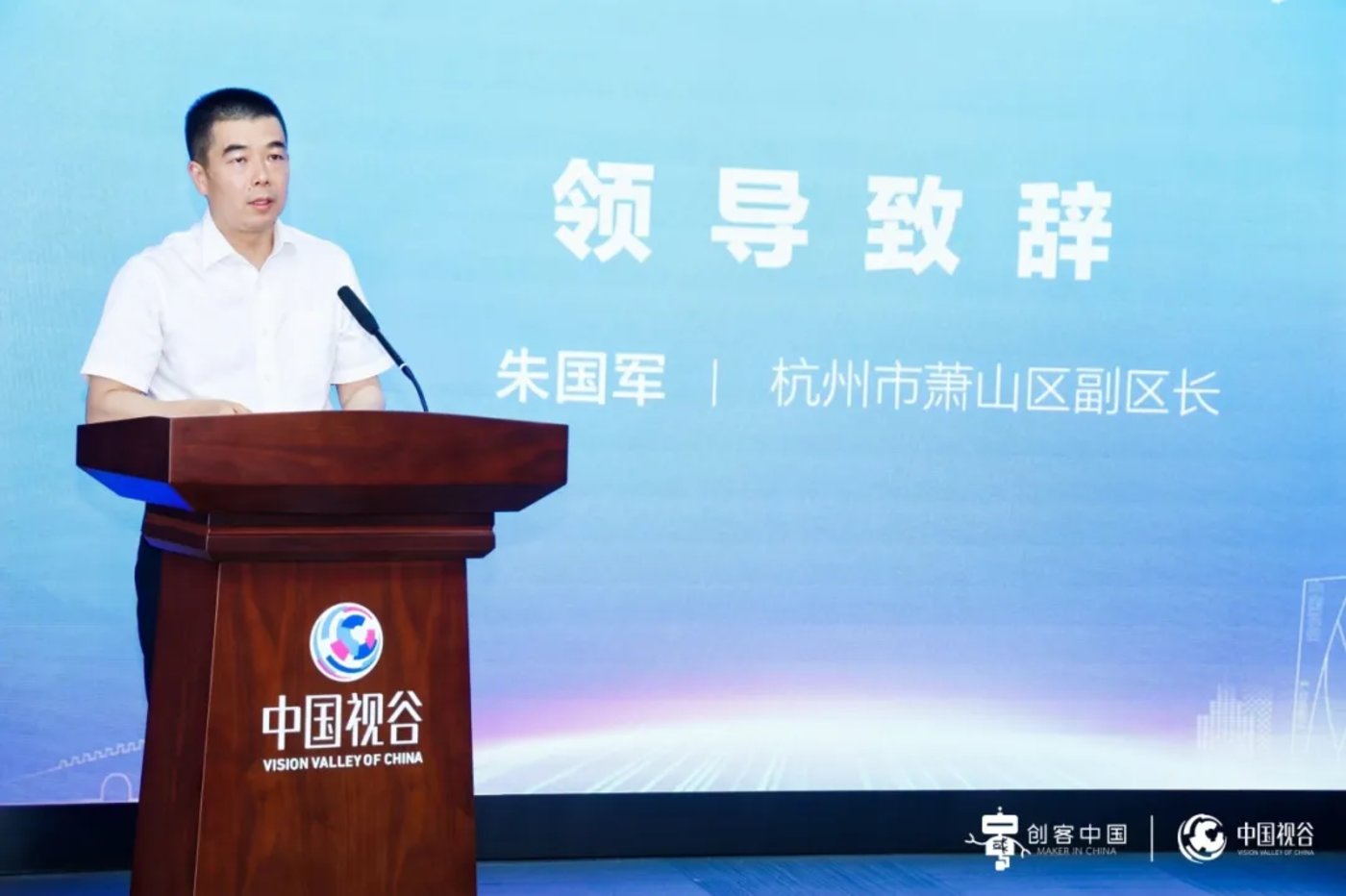 杭州市萧山区副区长朱国军在会上致辞