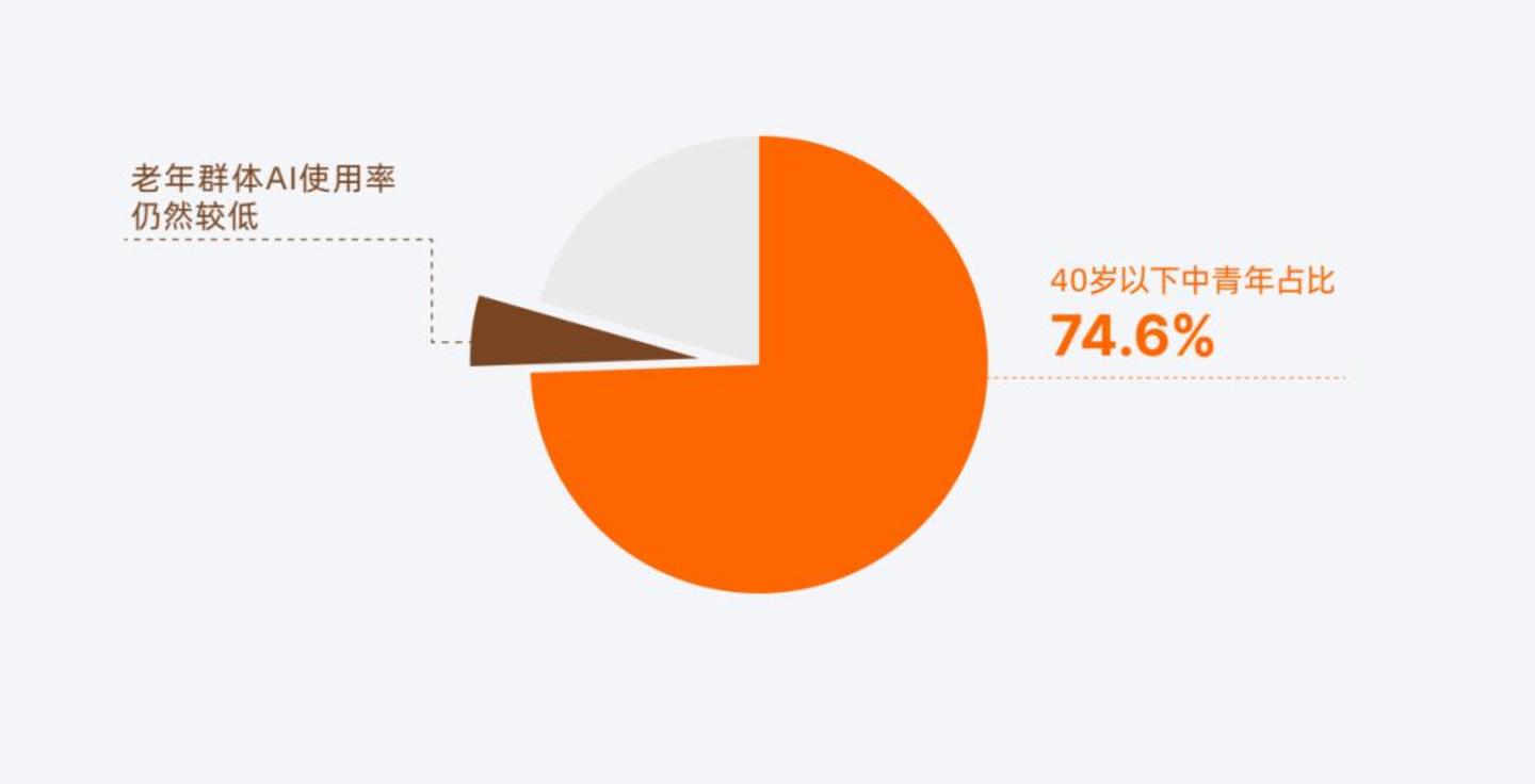 据中国互联网络信息中心数据,截至去年 6 月,我国生成式人工智能用户规模达 5.15 亿人,其中 40 岁以下中青年占比 74.6%,中老年人尤其是老年人对 AI 的使用率很低。