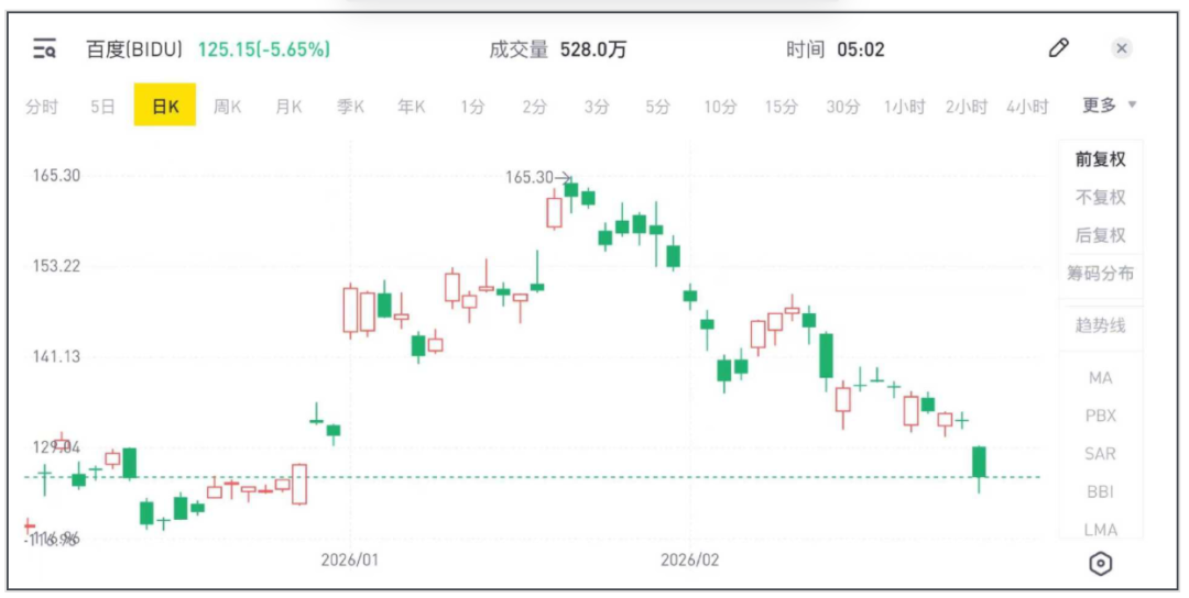 至少目前看来,市场对这个转型的态度并不明朗,这在股价上得以体现,财报发布后,百度美股股价下跌了近 6%。实际上,从 2026 年 2 月以来,百度的股价便一直跌跌不休。