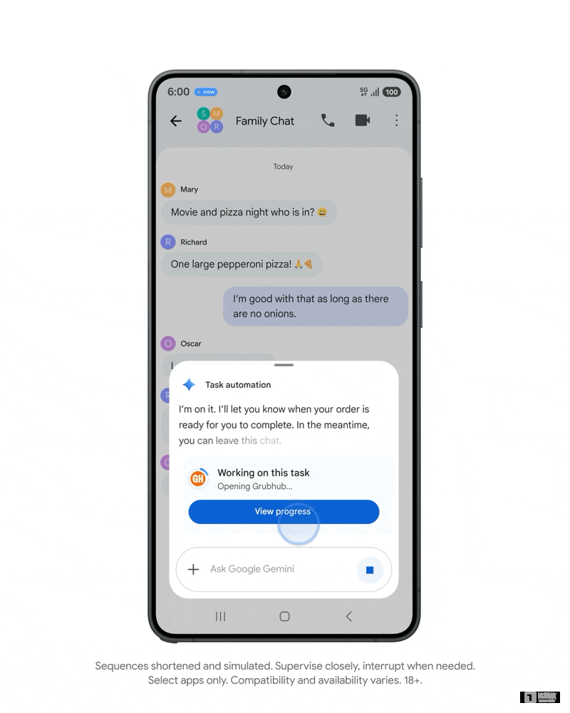 在安全性方面,谷歌方面指出,任务必须由用户明确发起,AI 不会擅自行动;用户可随时查看进度、介入干预或终止;涉及支付等敏感操作时,系统会提示用户手动完成。同时,谷歌方面还提示称,“Gemini 可能会出现操作失误,你需对其代你执行的操作承担责任,因此请密切监督其运行。”