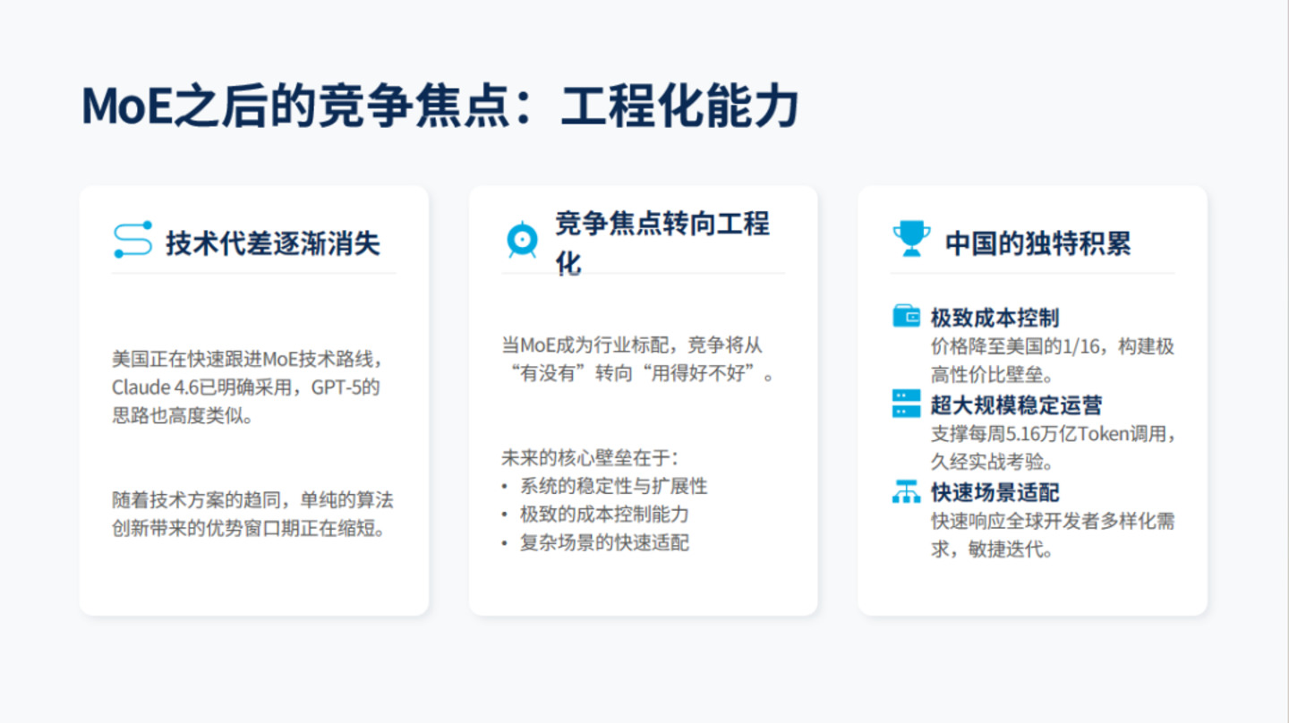 MoE 带来的窗口期大约 2-3 年。之后,要么在工程化上建立不可替代的优势,要么在下一代架构上实现突破——二者必居其一。