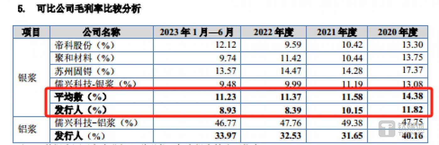 另外,报告期内,天盛股份银浆的毛利率分别为 11.82%、10.15%、8.39%、8.93%,同行可比公司平均值分别为 14.38%、11.58%、11.37%、11.23%。
