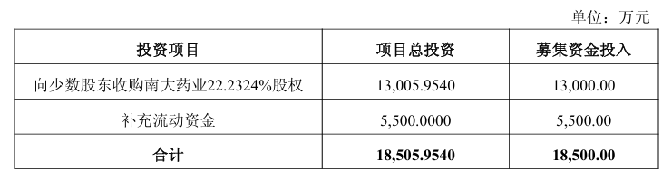 在 12.77 亿的募资投向中,用于收购南大药业少数股权的资金占比不算大。