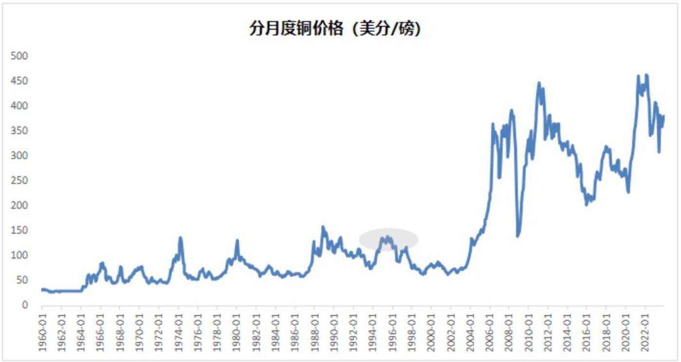 就在 1995 年,滨中泰男在铜期货上的做多头寸过多,就被市场盯上了,代表的对手方就是罗伯逊。整体上这个价格波动实际并不大,1994 年价格低点时大约每磅 0.8 美元,高点的时候 1995 年也不过每磅 1.4 美元。