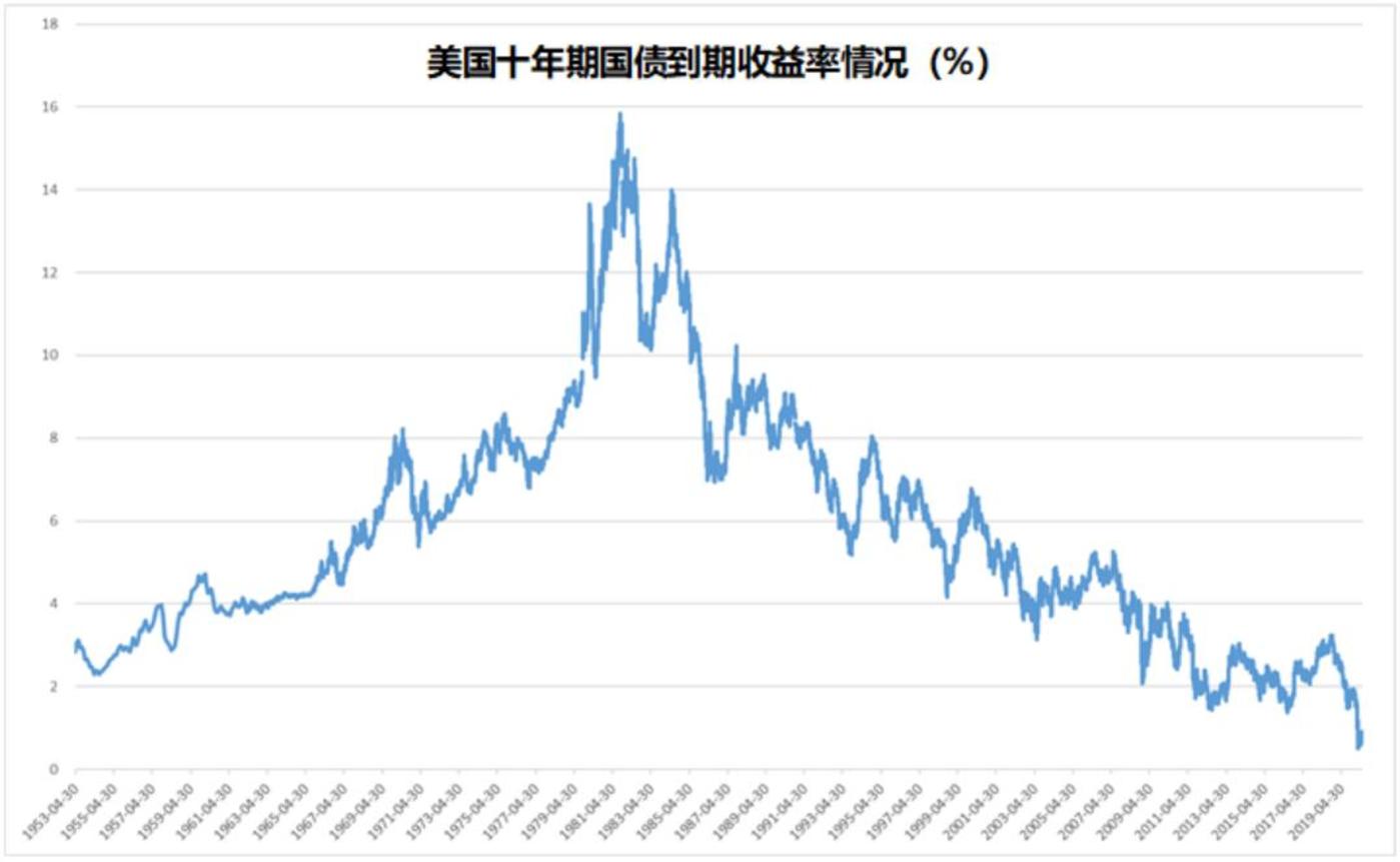 1969 年到 1981 年,美国股市基本上是原地踏步。这个 10 年总体的特征就是乱。康波周期进入萧条期,布雷顿森林体系倒塌,石油美元尚未形成,黄金进入大牛市。美国 10 年期国债收益率在这个 10 年里急剧上升,最高摸到接近 16%。