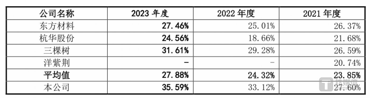 以最近的 2023 年数据来看,公司的 35.59% 的毛利率超过同行业平均水平,其中就包括了比公司规模更大的光华股份、飞鹿股份,甚至连续三年的毛利率水平都超过行业龙头三棵树。这样快速增长的态势也一直延续到了 2024 年。