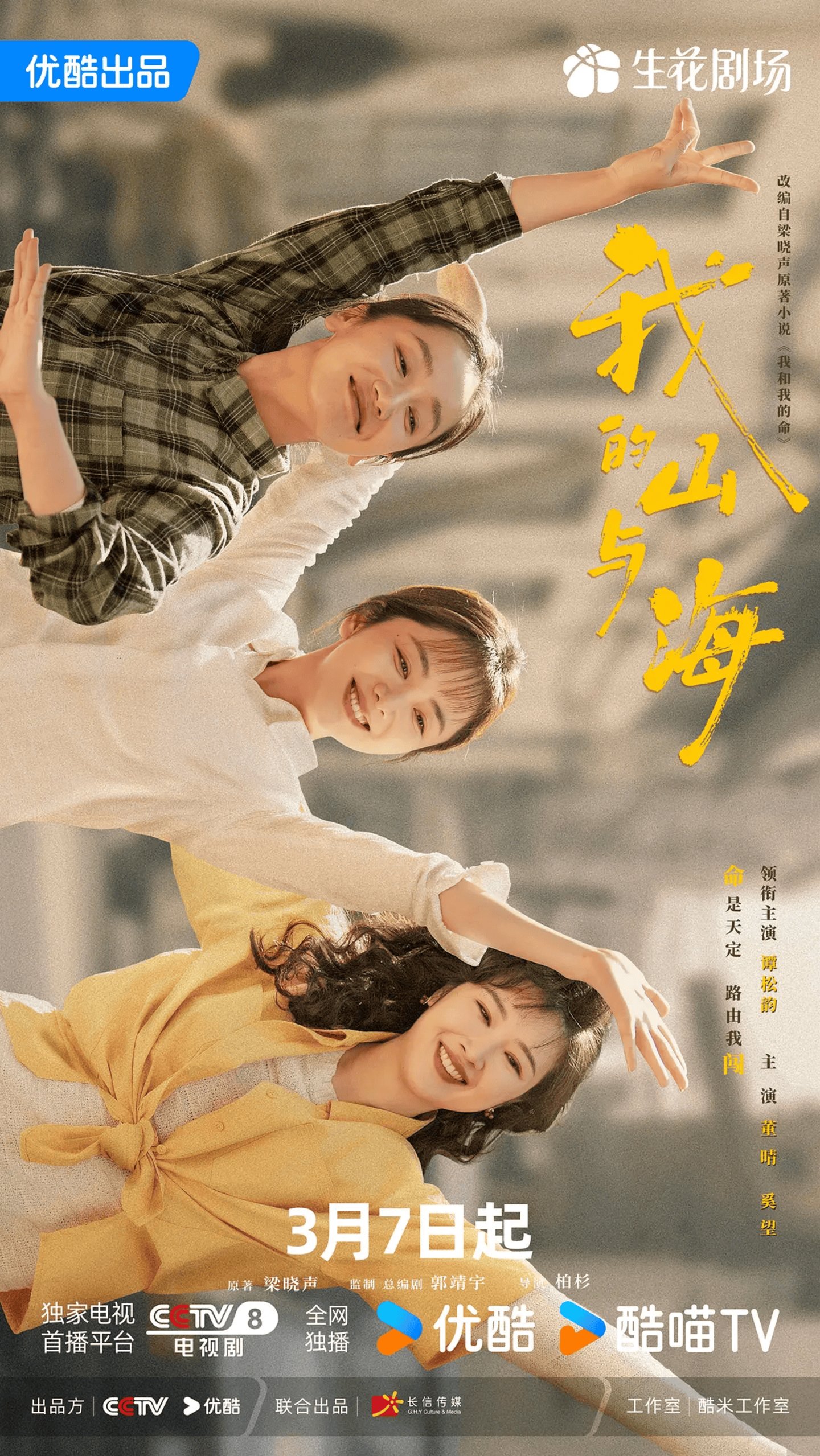 一部是由优酷与长信传媒出品的都市女性励志情感剧 《我的山与海》,将于 3 月 7 日在 CCTV-8 和优酷同步播出,由柏杉执导、郭靖宇编剧,谭松韵、董晴、奚望、高至霆等主演。
