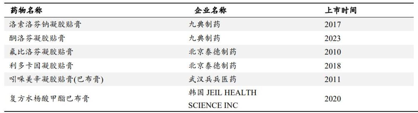 图:国内已上市化药贴膏一览,来源:东吴证券