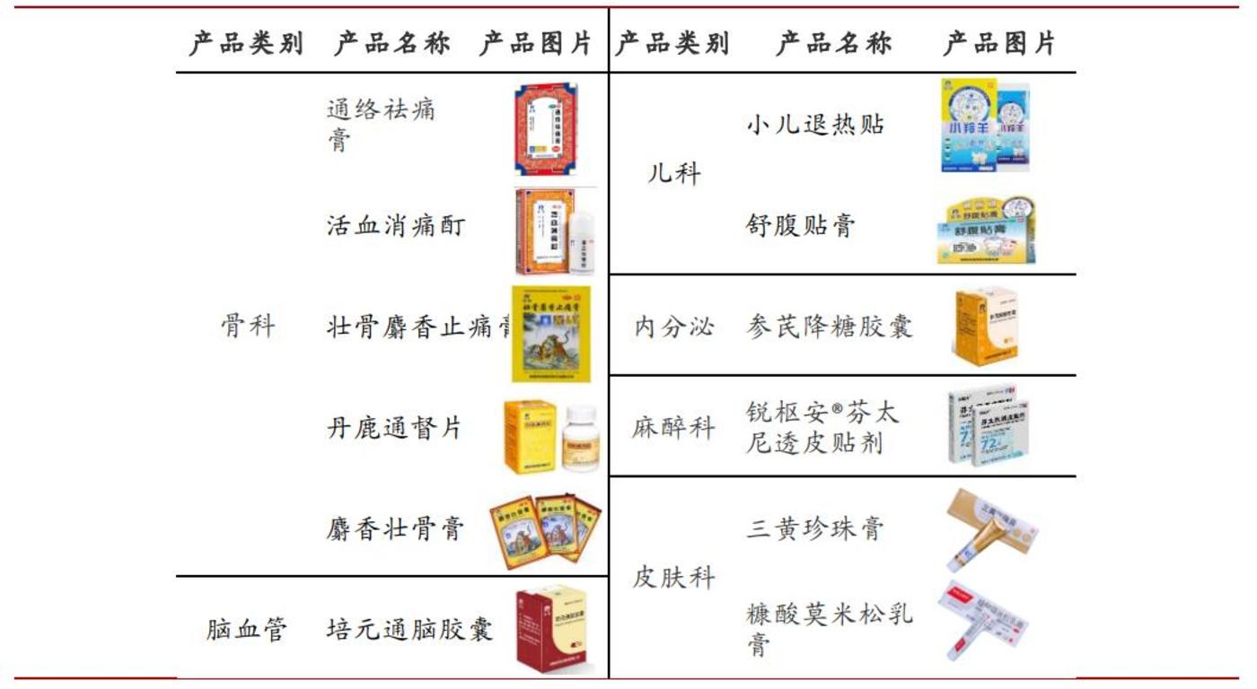 其中,核心产品通络祛痛膏作为独家产品,入选 《国家基药目录》《国家医保目录》,年销售额超过 10 亿元;「两只老虎」 系列四个产品在同类产品中的市场占有率均为第一,2022 年壮骨麝香止痛膏、伤湿止痛膏、关节止痛膏、麝香壮骨膏的市场占有率分别为 92.59%、48.36%、39.28%、30.68%,2023 年合计销量超 10 亿贴,稳居龙头位置。