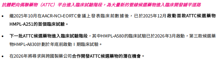 此外,ATTC 平台 (抗体靶向偶联药物) 已批量进入临床,计划 2026 年寻求对外合作,市场预期相关协议可能在下半年落地。管理层也明确,短期内没有回购或分红安排,手头资金将优先投入 ATTC 全球开发,同时留意外部授权引进和并购机会。