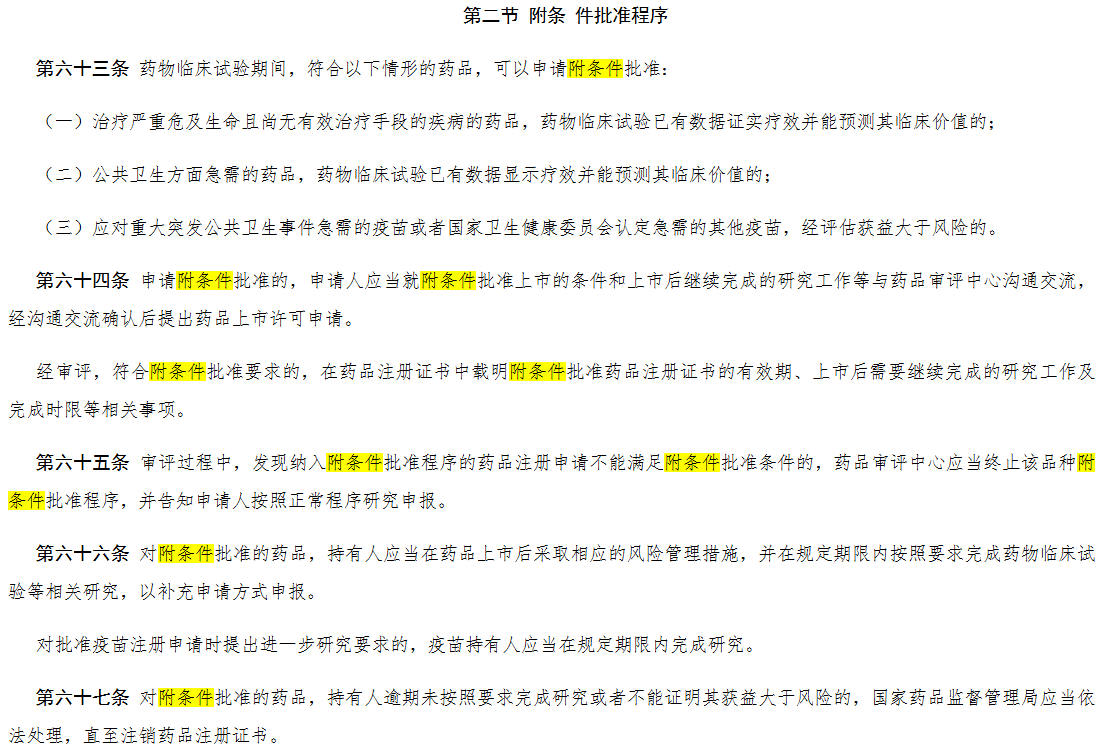 药品注册管理办法中的附条件品准程序
