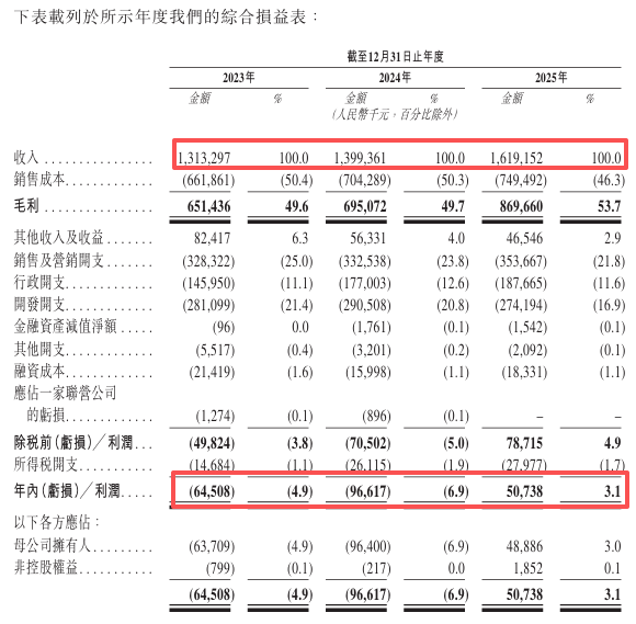 最关键的突破在盈利端。2022 年至 2024 年,公司累计净亏损 3.87 亿元,但亏损幅度逐年收窄。2025 年成功实现净利润 5073.8 万元,经调整净利润达 1.29 亿元,净利率 3.13%,正式告别持续亏损状态。