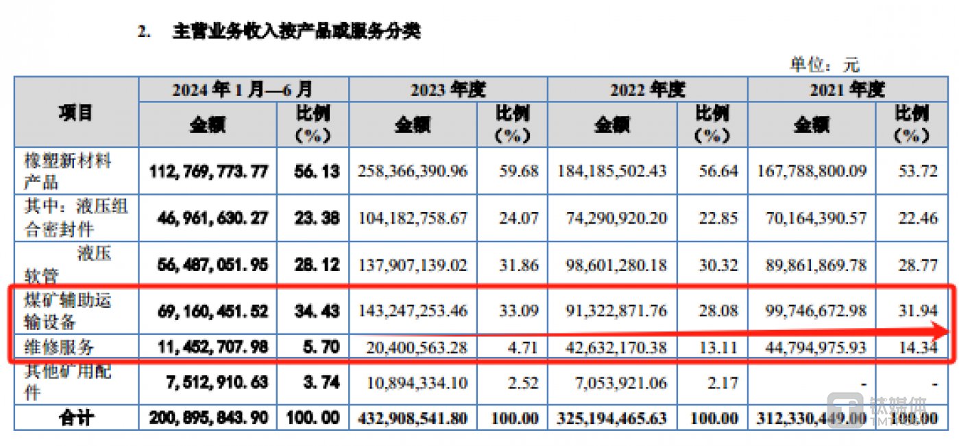 从产品或服务上看,科隆新材主要拥有橡塑新材料产品、煤矿辅助运输设备、维修服务等,具体情况如下: