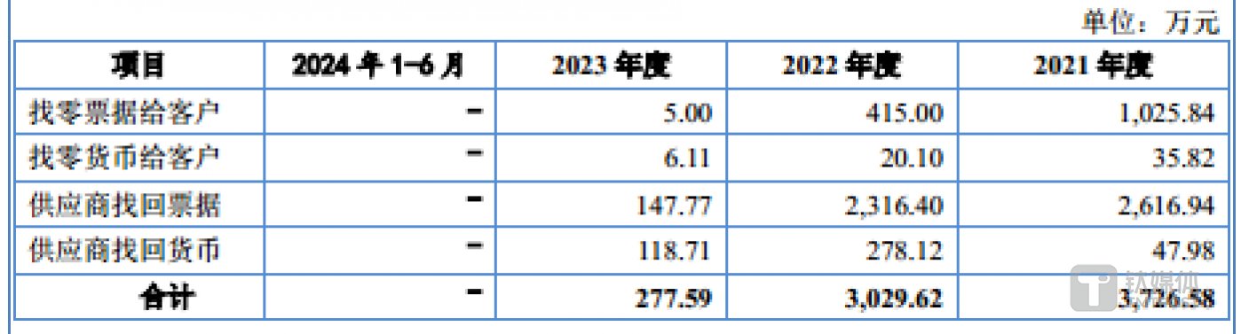 其次,报告期内,科隆新材因票据收支的票面金额与购销金额不匹配,存在与供应商、客户进行 「大票换小票」 的票据找零情形,具体情况如下: