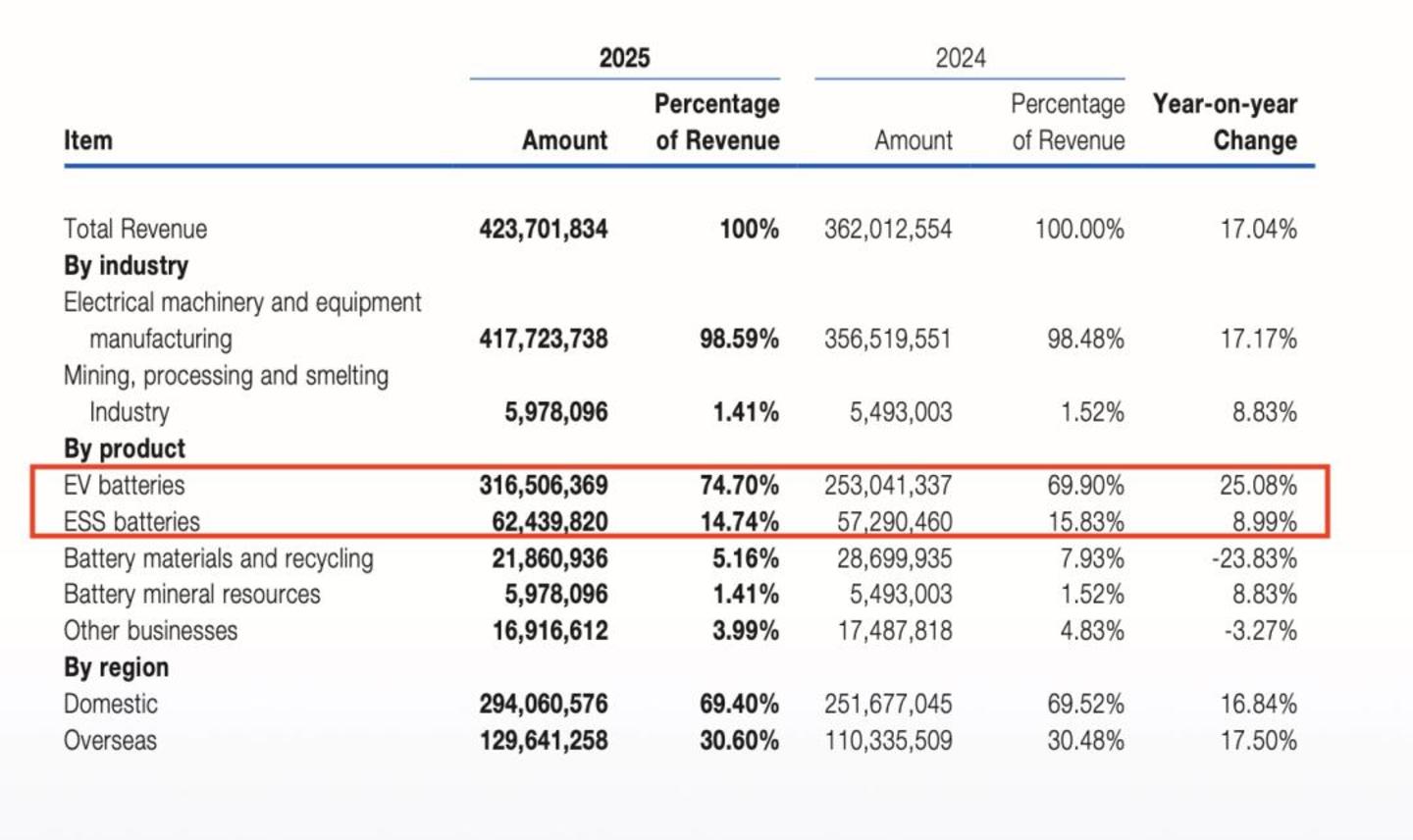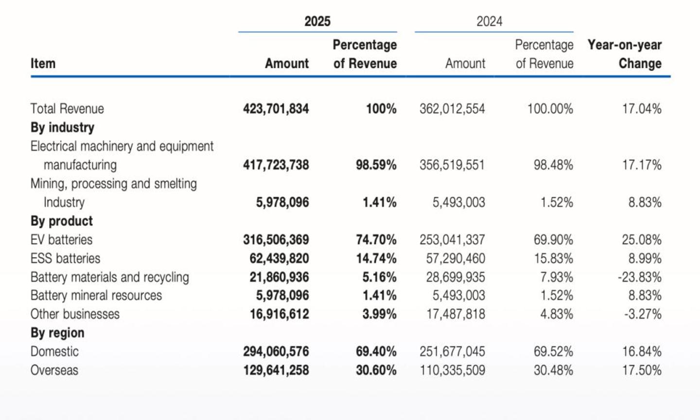 年营收 4237 亿元,同比增 17.04 %|来源:宁德时代 2025 年报