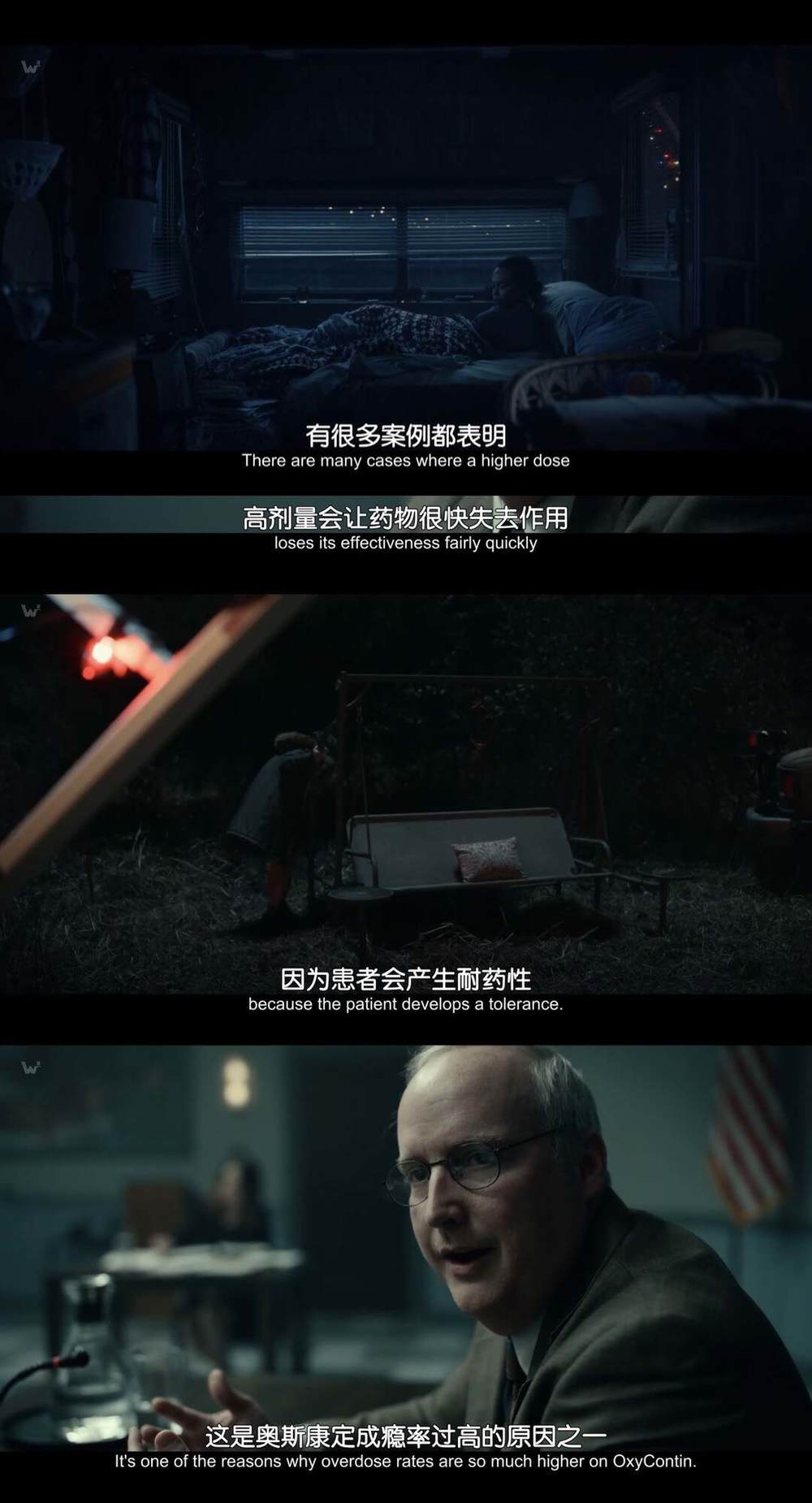 美剧 《成瘾计量》 详细呈现了普渡制药公司生产的奥施康定 (OxyContin) 如何毁掉了几代美国人,万斯的母亲就是无数受害者之一。从最开始的止痛药,发展到更大剂量的成瘾药物,最后是可卡因,终点是海洛因,这几乎是大部分底层美国人的成瘾路径。