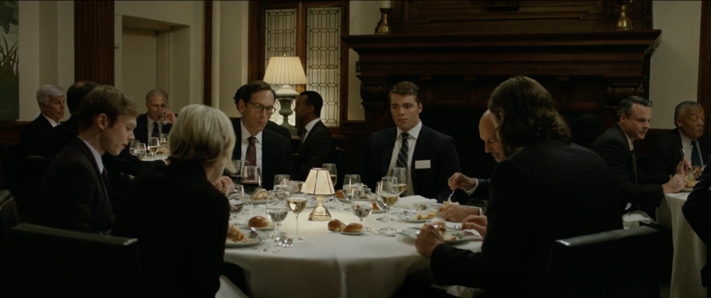 在 《乡下人的悲歌》 改编电影中有这样一个画面。年轻的万斯穿着西装坐在耶鲁大学的酒会上,他紧张忐忑,浑身都不舒服,总是担心自己出错,饭桌上的欢声笑语让他焦虑。这让人想起了 《泰坦尼克号》 杰克参加的那次上流晚宴,只不过万斯更谨慎,更焦虑,也更想抓住向上的机会。