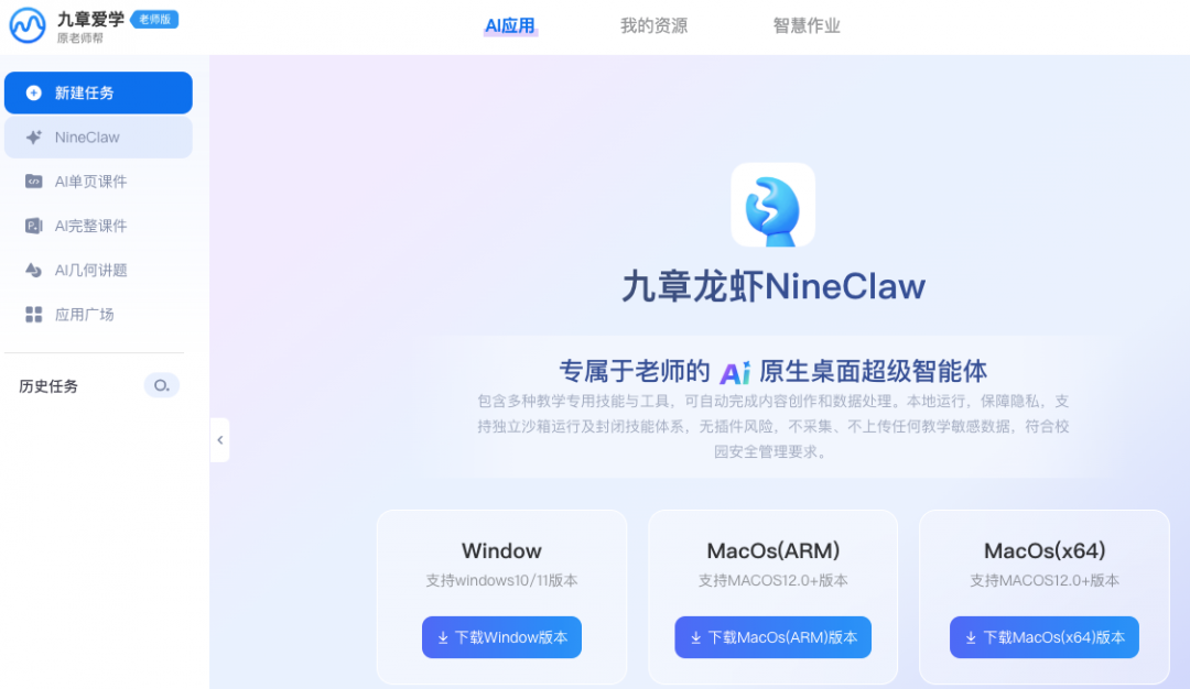 九章龙虾也是对 「九章爱学」 产品布局的进一步完善,将 AI 助手的形态从移动端延展至桌面端,以更强大的本地化能力满足教师深度办公需求。