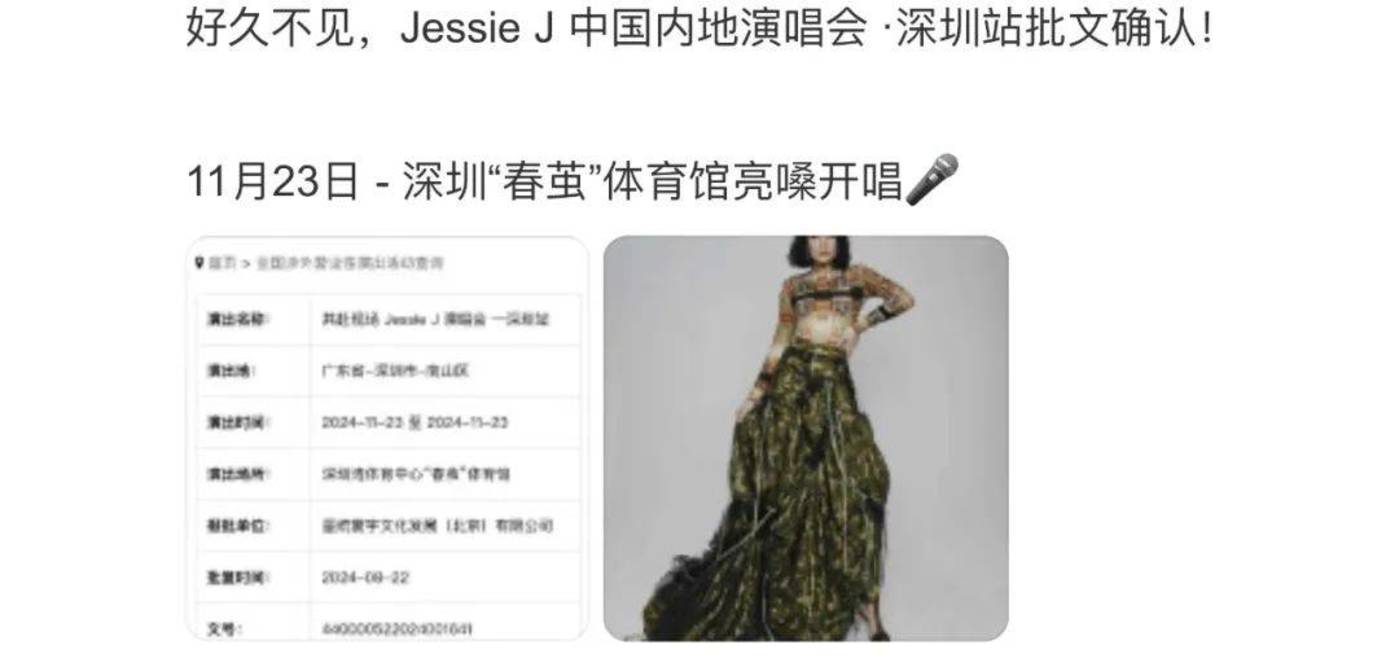 另一个即将访深的欧美歌手也与 《歌手》 密切相关,她就是曾全程参加 《歌手 2018》 并一举夺魁的 「歌王」 结石姐。网传的 Jessie J 这轮巡演审批信息也出自文旅部官网,她基本已经确定即将于 11 月 23 日在深圳春茧体育馆亮嗓开唱。