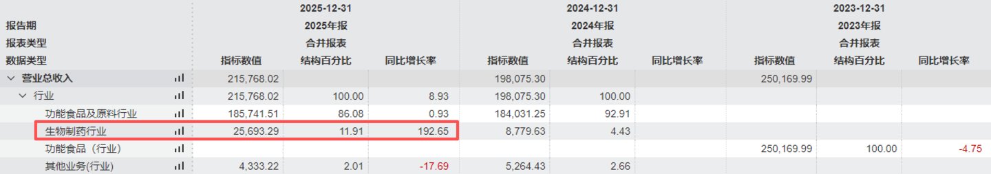 创新生物药的收入则开启高速增长,2025 年公司生物制药业务收入达 2.57 亿元,同比暴涨 192.65%,成为营收增长的动力源。