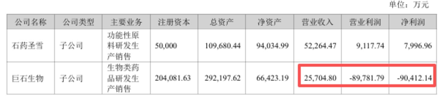作为公司创新药业务的核心载体,巨石生物 2025 年实现营业收入 2.57 亿元,净亏损却高达 9.04 亿元,直接拖累新诺威整体业绩。