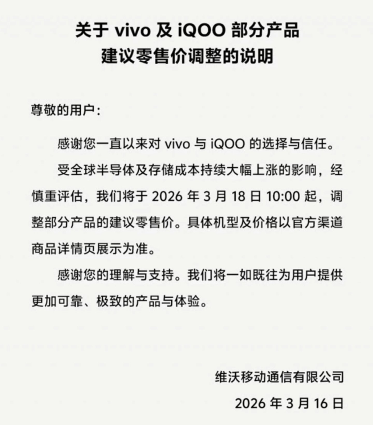 3 月 16 日,vivo 的一纸公告为这场持续了整个月的 「涨价潮」 下了定论,从 3 月 18 日起,vivo 和 iQOO 的部分在售机型将正式调价。