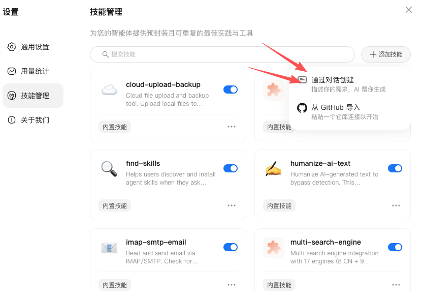 在核心的“ 技能 (Skill)” 扩展上,QClaw 提供了自由度。用户可以直接从 GitHub 开源社区导入技能库,甚至能通过自然语言对话“ 手搓” 技能 。例如,当提出“ 创建一个新闻监控技能” 时,它能迅速理解并生成包含多信息源抓取、中文输出等配置在内的定制化技能 。