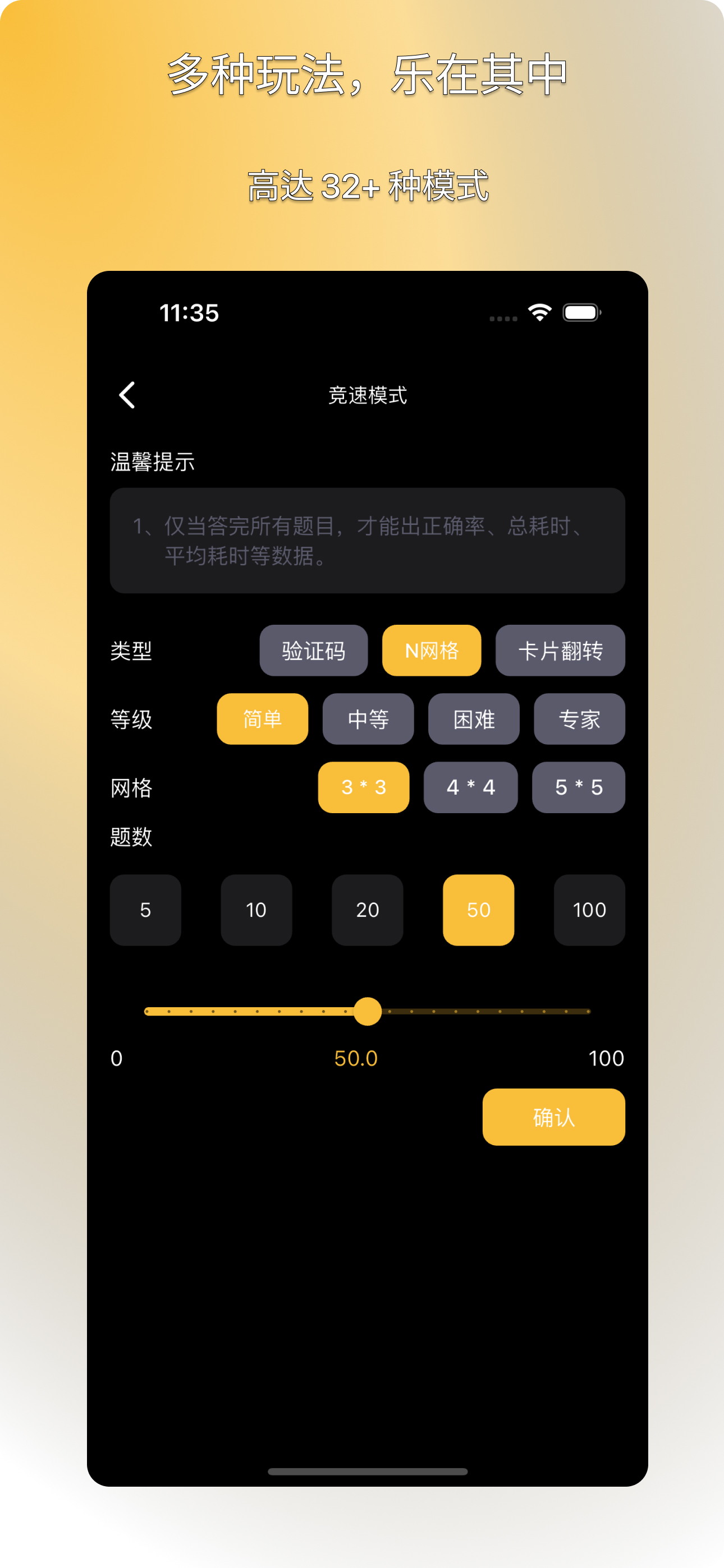 N 网格记忆:支持 2×2 ~ 6×6 等多种网格规格