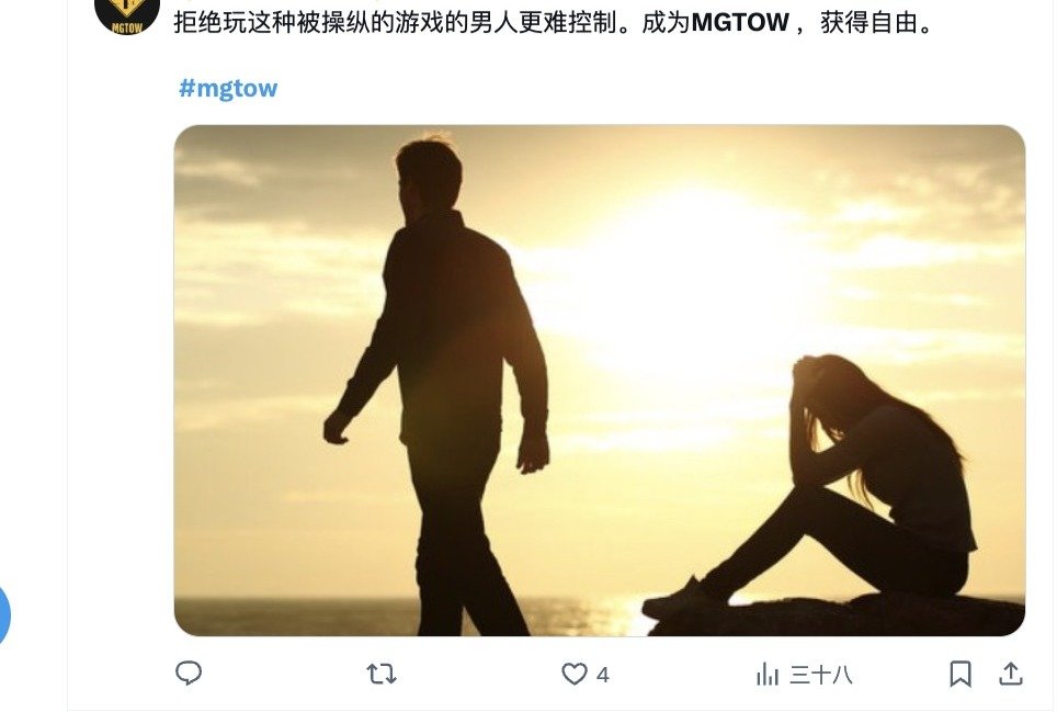 与之完全相反的是 「米格道」,(MGTOW:Men Going Their Own Way),他们主张完全远离女性,不受女性诱惑,认清女人肮脏市侩的本质。
