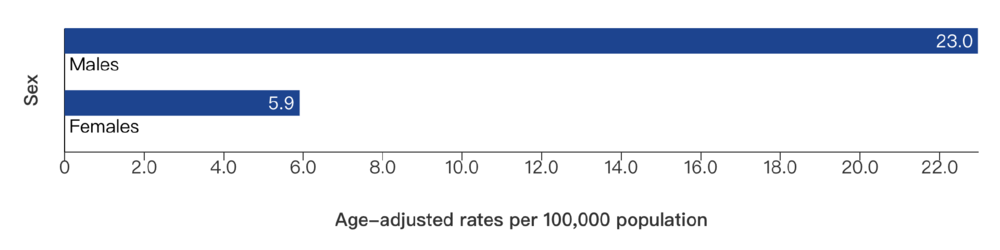 2022 年男性自杀率已经达到女性的 4 倍,占到自杀总人数的 80%。