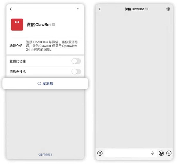 在隐私安全方面,微信官方明确,ClawBot 严格遵循本地优先、数据自持、隐私可控的设计原则,仅获取必要的消息收发权限,不读取聊天记录、不获取通讯录、不上传文件内容,所有指令执行与数据处理均在用户授权范围内完成,且不收取任何费用、不强制上传数据,全程保障用户隐私安全。此外,该插件仅支持一对一私聊模式,禁止被拉入群组,其他用户无法添加或查看,进一步杜绝信息泄露风险。(萧健)
