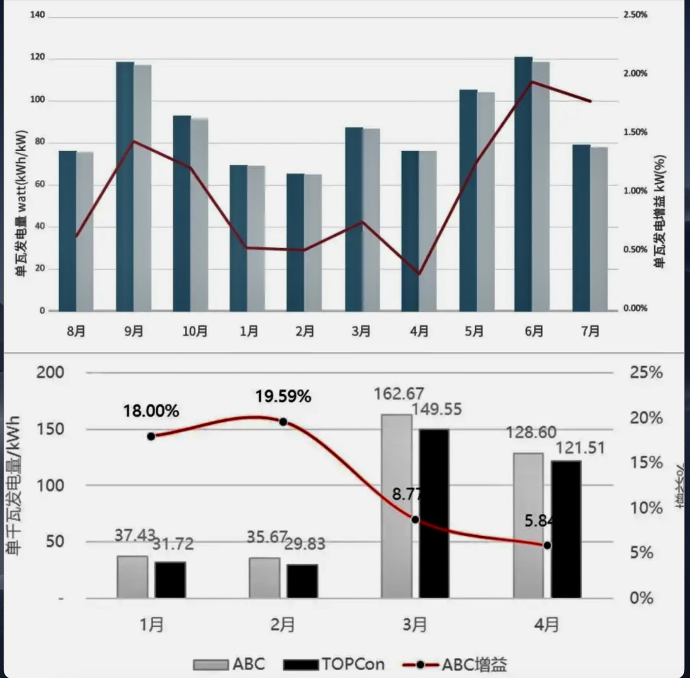 今年夏季,两方阵营的 「实证数据战」 明显升温,6、7、8 三个月里各方你来我往发布了多项 「针尖对麦芒」 的实证数据,晶科能源的数据表明 TOPCon 组件在增面发电量等方面比 BC 组件更具优势,爱旭与隆基则抛出数据欲证明 BC 组件的功率领先 TOPCon 组件。