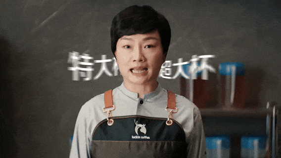 十五年后,这个场景被复现,一样的罗永浩,一样的女店员,不同的是这次场景被换成了瑞幸咖啡。女店员向罗永浩介绍标准杯、特大杯以及最近刚刚推出的超大杯,最后罗永浩下单 5 杯超大杯,满意而归。