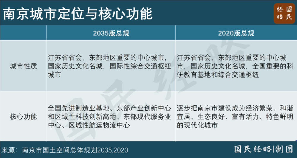 而在 2016 年获批的 2020 版总规中,南京的定位是: