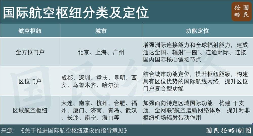 这在不久前发布的国际航空枢纽规划就可见一斑。只有北上广被赋予 「全方位门户复合型」 的定位,而深圳、成都、重庆等地都只是 「区位航空枢纽」。