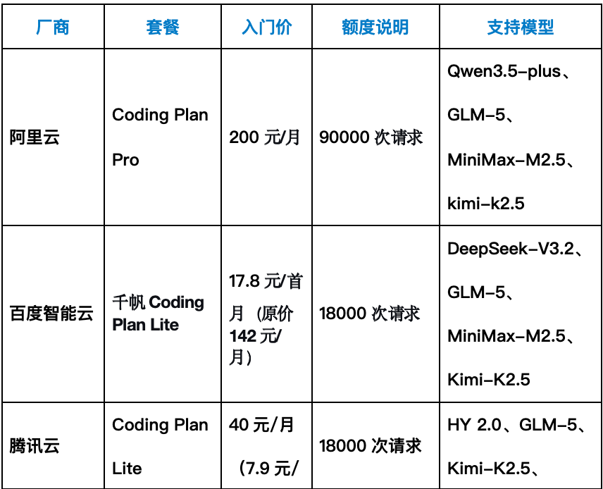 因此,Coding Plan 订阅套餐才是"养虾"的正确姿势,也是各厂商争夺最激烈的战场。