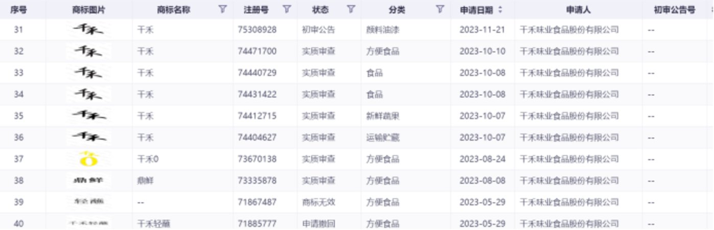 图 2 「千禾 0」 商标注册信息 图源:同花顺