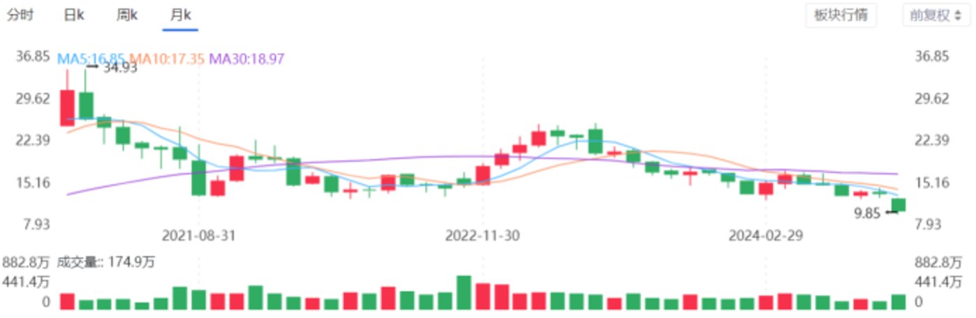 图 9 千禾味业月 k 线图 图源:同花顺