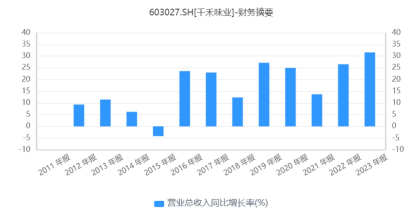 图 4 千禾味业营业总收入同比增长率 图源:同花顺