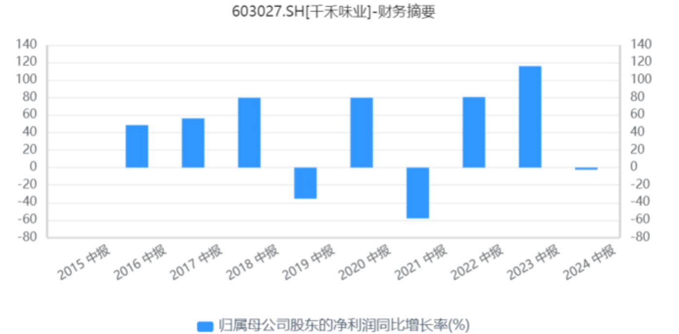 图 7 千禾味业半年报归母净利润同比增长率 图源:同花顺