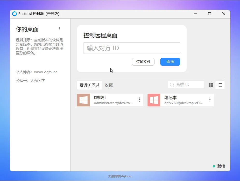 相较于原生 Rustdesk,定制编译后的工具在使用体验上做了针对性优化: