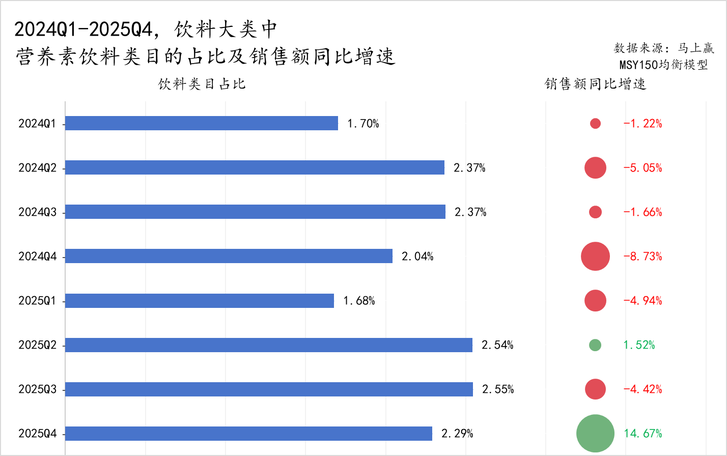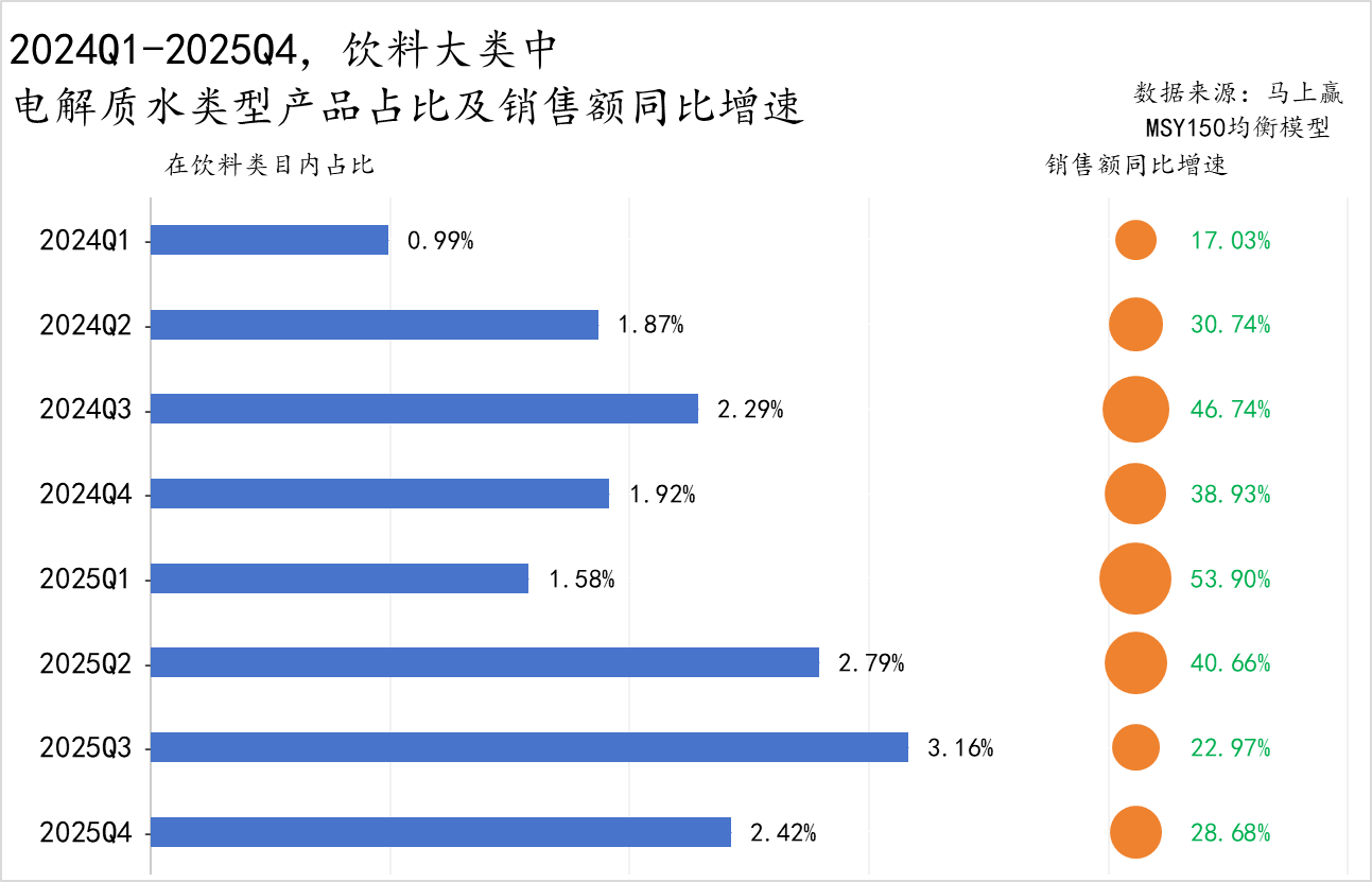 2024Q1-2025Q4,电解质水的占比、销售额同比均增速显著。