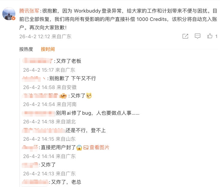 【TechWeb】4 月 2 日消息,腾讯云官方微博今日中午发文称,今日 (2026 年 4 月 2 日)09:10 监测到部分国内用户出现登录异常的情况。团队在第一时间介入并紧急处理,相关问题已于 11:45 逐步修复,目前服务已全面恢复稳定。