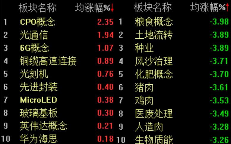 板块方面,CPO 概念股再度活跃,德科立、光库科技、长光华芯涨幅超过 10%。光刻机概念股持续走高,中润光学、中船特气、美迪凯等涨幅居前。