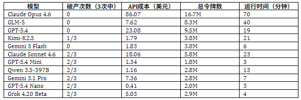 例如,在前文表格中,Gemini 3.1pro 作为旗舰款的 Pro 模型,按惯例来讲应该是同系列中参数最大的,但在三次测试中破产两次;反观其轻量版模型 Gemini 3 Flash 一次都没有破产,虽然最终资金不多,但至少活下来了。