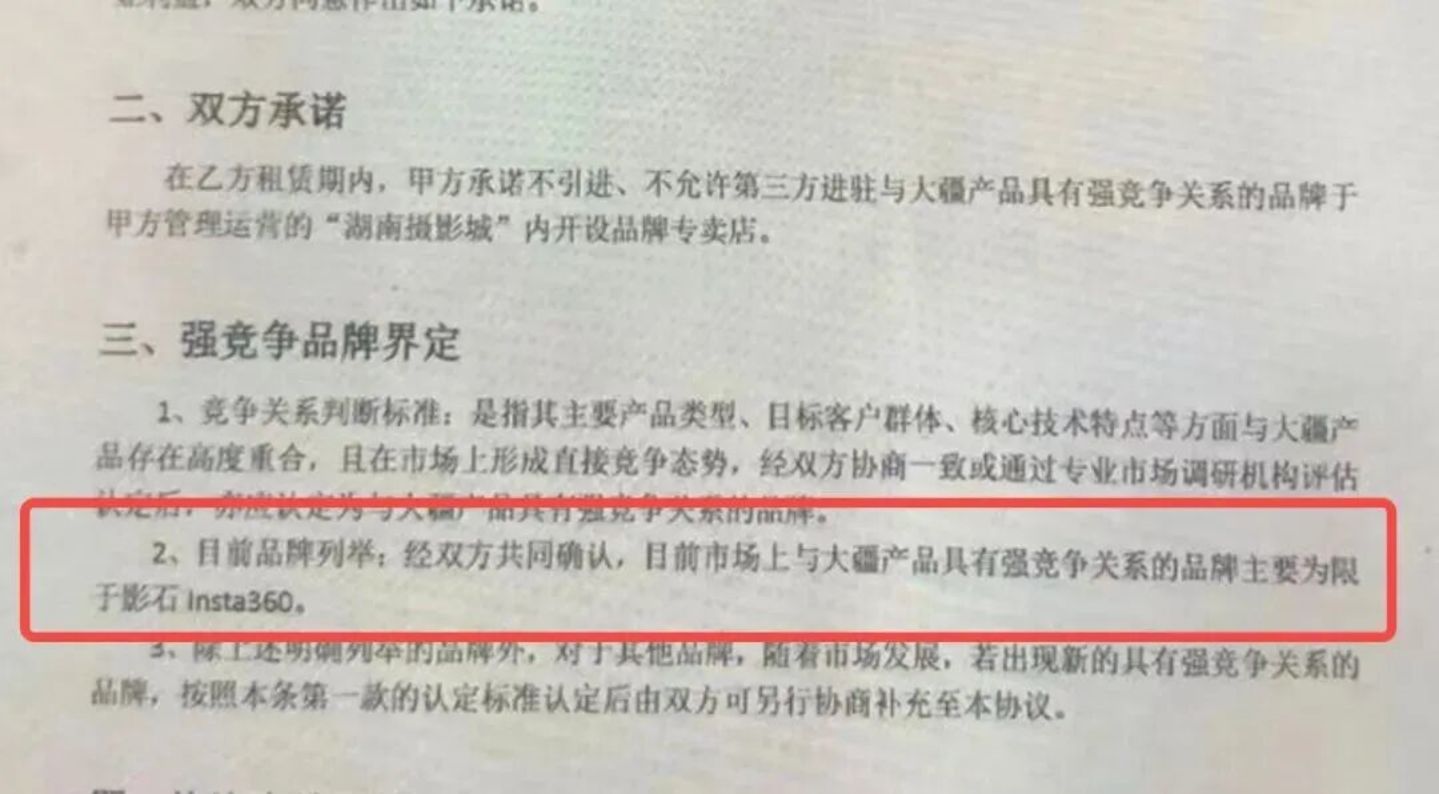 大疆的反击很直接:封杀。去年 11 月,湖南长沙一位影石经销商耗资百万装修的门头被强制拆除,因为商场和大疆签了排他协议,明确禁止引进 「影石 Insta360」。