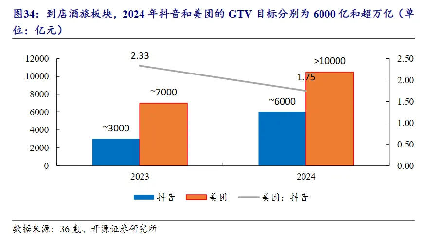 自 2021 年发力以来,抖音生活服务的 GMV 增长曲线堪称陡峭。从 2022 年的约 770 亿元到 2023 年剑指 4000 亿的目标再到 2024 年冲击 6000 亿的豪言,抖音一度让老大哥美团感到了切实的寒意。