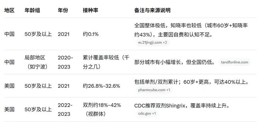 但同样是千元以上的价格,对老年人感染率和痛苦极大的带状疱疹,中国老年人的 GSK 带状疱疹疫苗接种率就不超过 0.1%,甚至部分老年人拥有全额医保和足够储蓄,也没有任何紧迫性去接种。